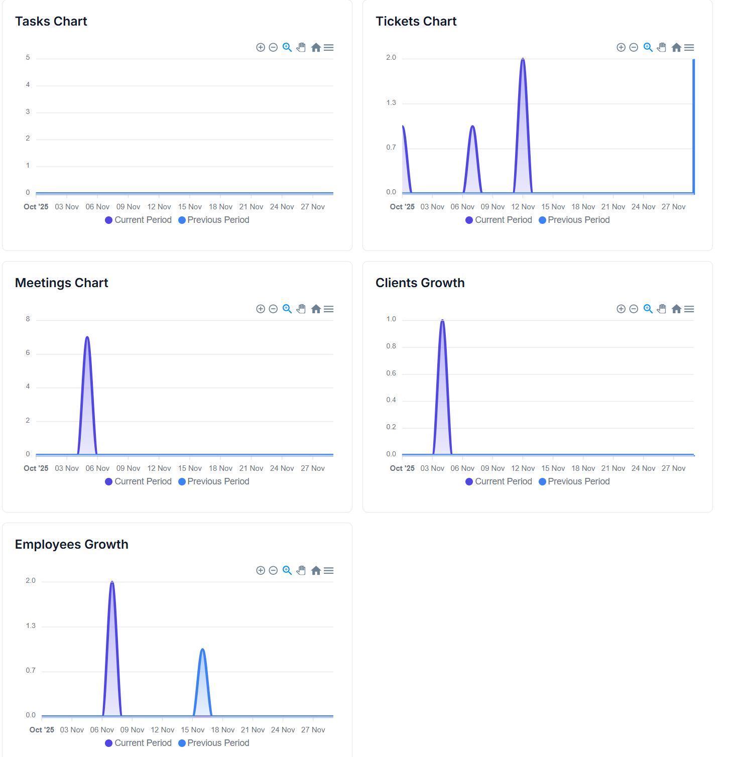 Measure completed tasks, delayed tasks, upcoming work, and productivity markers.